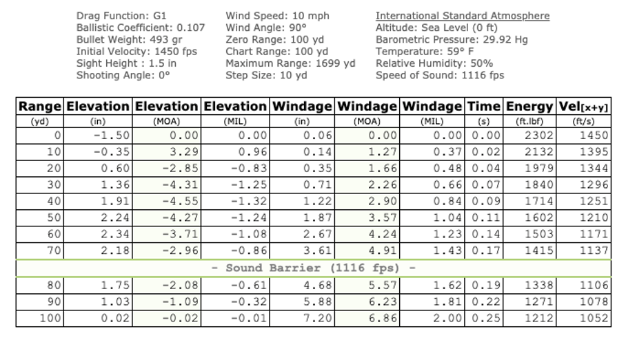 Piyasadaki tek kurşunların namlu çıkış hızını yaklaşık 1450 fps (442 m/s) olarak alırsak Foster için: