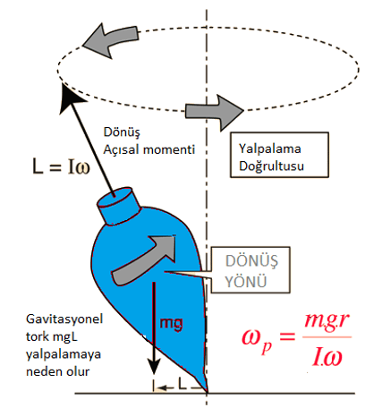 Yukarıdaki şekilde dönen bir topaç’ın ne zaman, hangi dönüş sayısının altında yalpalamaya başladığı fiziksel formül ile hesaplanabilmektedir.