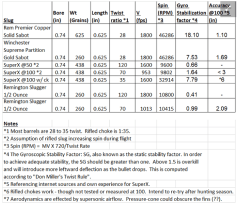 Outdoorlife forumda rifled slugların 10.000, yivli şok ile 40.000 devir yaptıklarını yazmışlar (tablonun kaynağını bulamadım)