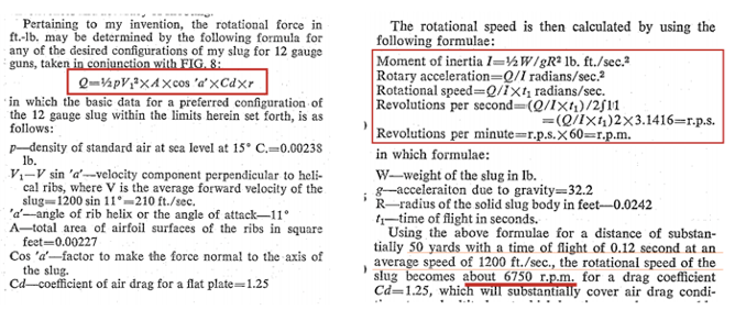 George N. Vitt kanatçıklara binen hava akımına göre yaptığı hesaplarda 12 gauge slug için dakikada 6750 devir hesaplamış: