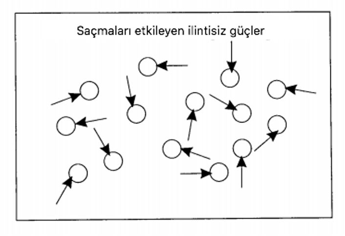 Yukarıda anlattığım etkilenmeler sonuca etkili olmakla beraber saçmalar dağılmaya başladıktan sonra daha karmaşık, rastgele etkiler saçma taneleri üzerine etkili olur, karmaşık matematik formüller gerektirir. Ancak saçmaları bu rastgele hareketleri Markovian teori ile açıklanabilmektedir