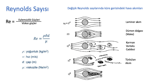 Aerodinamik hareketler akışkanların (burada hava) viskozitesi ile karmaşık bir şekilde alakalıdır. Eylemsizlik güçlerinin/viskozite güçlerine oranına Reynold sayıları adı verilir. Reynold sayıları “kürenin hızının, kürenin çapı ile çarpımı” nın, hava viskozitesine bölümü” ile elde edilir. Yüksek Reynold sayılarında direnç iyice düşecektir. Aşağıdaki resimde değişik Reynold sayılarında güllenin gerisinde oluşan hava akımı özelliklerini görebilirsiniz: