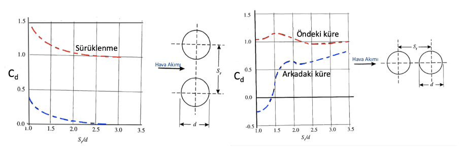 Üst üste giden iki küre biri birine yakın olduğunda sürüklenme (Drag) %50 kadar artmaktadır. Aralarındaki mesafe kürelerin yarıçaplarının 3.5 katına vardığında ise sürüklenme azalmakta ve her biri kendi sürüklenme katsayısı ile hareket etmektedir: