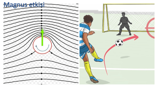 Birincisi sürtünme ile bir dönme meydana gelirse: Dönme sonucunda fizikteki Magnus etkisi ortaya çıkar. Fizikteki Bernoulli eşitliğinden kaynaklı bu etkide, dönme tarafına doğru küre şeklindeki cisimlerde bir sapma ve falso ortaya çıkar.