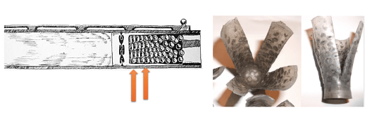 Yukarıdaki resimde tapa içindeki kurşunların özellikle dip kısımdakilerinin hızlı yanışlı barutlarla ani basınç yükselmesi ile ezilmesi (setback) ve bunun tapa içindeki izleri gösterilmiştir. Yüksek namlu çıkış hızlarında bu ezilme artacağı için “Hız saçmanın düşmanıdır” diyebiliriz.