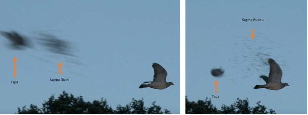Bu videoda mesafe arttıkça hedefe vuran ilk saçma ile en son saçma arasında saniyenin 1/3 ü kadar bir fark olmuş. Eğer hızlı uçan bir hedefe (keklik, ördek, trap plağı) attığınızda bu fark alacağınız sonucu cidden etkiler.