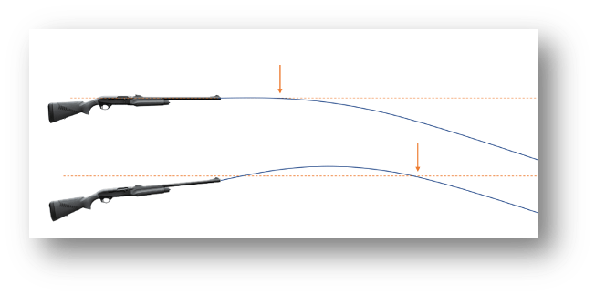 Atış esnasında atış hattı ile namlu doğrultusu paralel gibi görünebilir. Böyle olsaydı şekilde görüleceği gibi mermi 10-15 metre sonra gerek sürüklenme, gerekse yerçekimi etkisi ile düşmeye başlardı. Aslında gez, arpacığa göre (sıfırlama mesafesine bağlı olarak) çok az yüksektir.