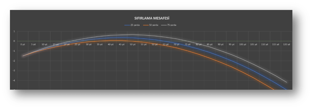 Namlu hattı ile atış hattı arasında (sıfırlama mesafesine bağlı) 0,04 – 1,5 derece arasında bir açı vardır. Bu açı nedeniyle mermi namludan çıktıktan sonra nişan hattına doğru yükselir, namlu çıkış hızına bağlı olarak 10-15 metre sonra nişan hattını keser, bir miktar yükseldikten sonra sürüklenme ve yer çekimi etkisi ile sıfırlama mesafesinde nişan hattını ikinci kez keserek düşmeye başlar.