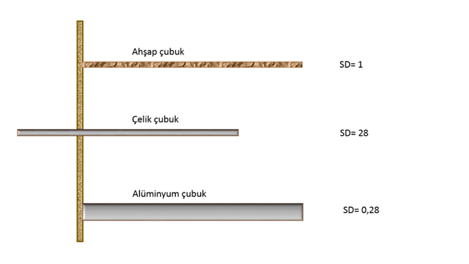 Aynı hızla fırlatıldıklarında karşıya konan kontrplak levhayı SD = 28 olan çelik çubuk deler. Aynı çaptaki ahşap, aynı ağırlıktaki alüminyum çubuk çok düşük SD leri nedeniyle delemezler.