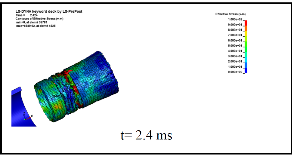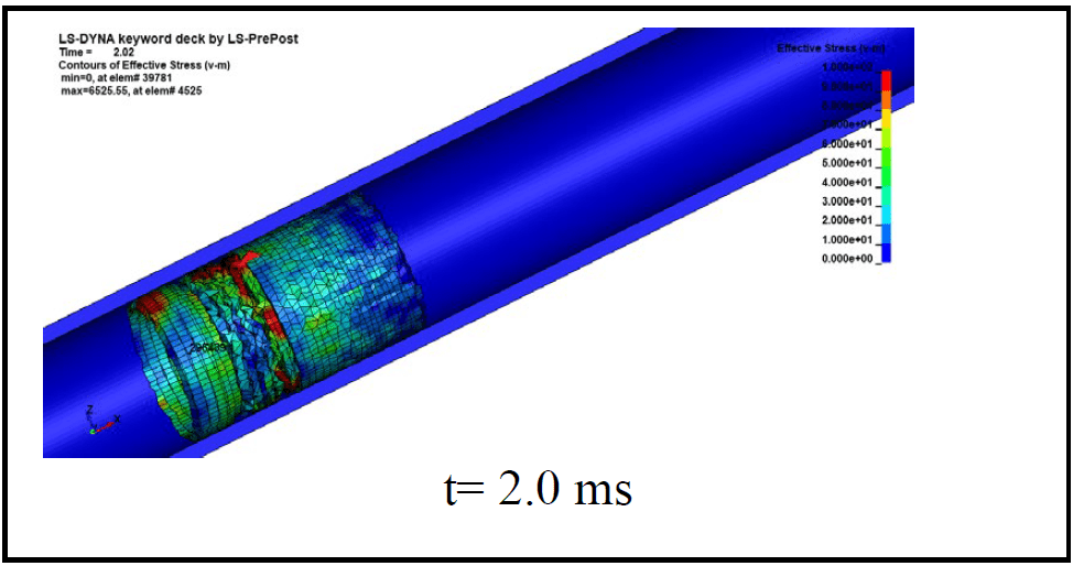 2.0 milisaniyede tapa namlu içerisinde ilerlemeğe başlamış, tapa zerindeki stres azalmağa başlamış bu arada hız artmakta