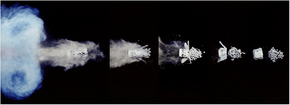 4. milisaniyede tapa yüksük kısmı kanatçıkları açılmaya başlamış, saçmalar tapayı terk etmeye başlamış